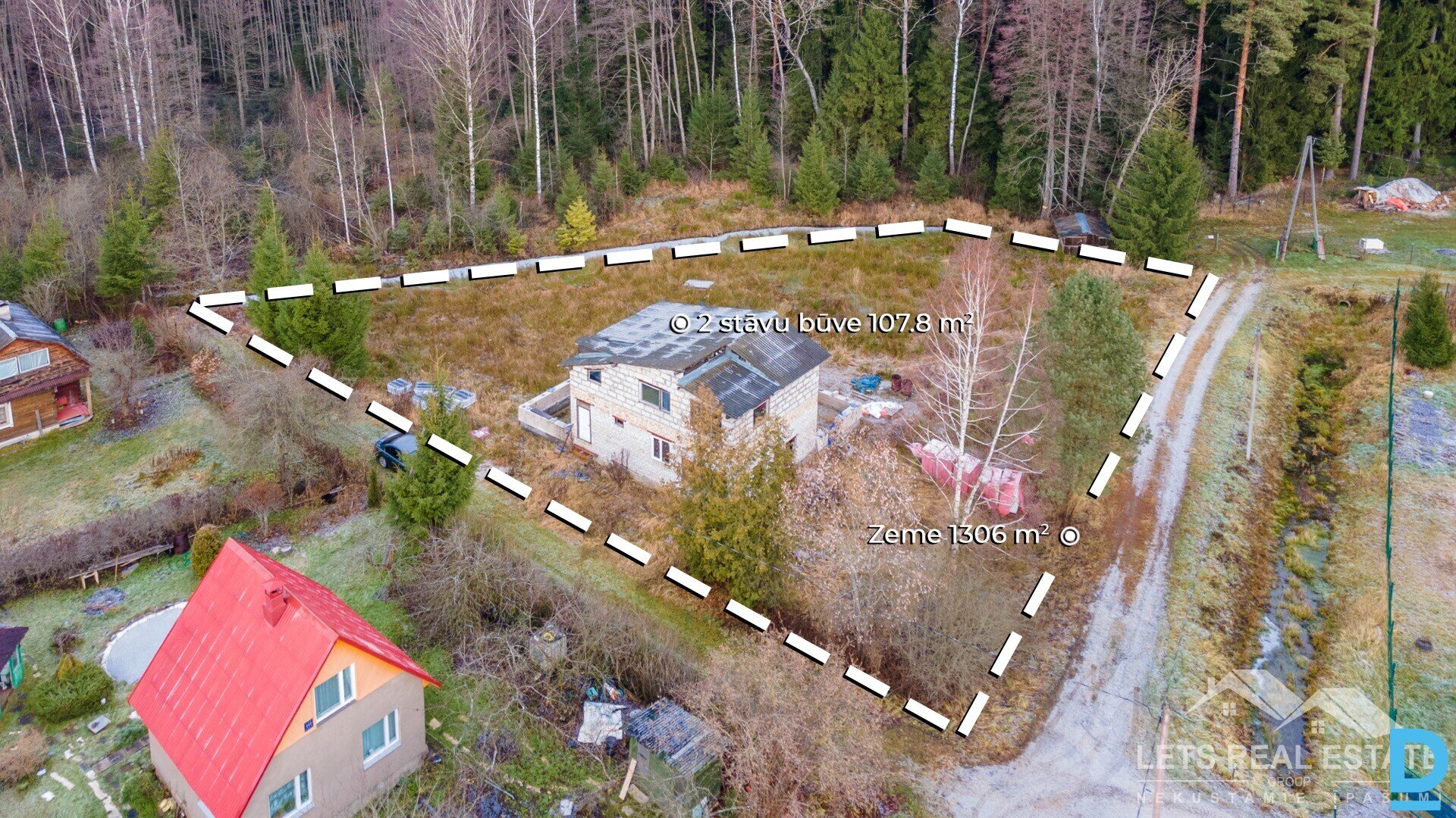 Ciematā Vaivadi, klusā vietā, meža malā, tiek pārdots liels zemes gabals 1306 m² un nepabeigta divstāvu jaunbūve ar platību 107.8 m². Pārdodams īpašums sastāv no diviem zemesgrāmatā ierakstītiem zemes gabaliem un jaunbūves. Zeme ir izlīdzināta un veikta meliorācija. Jaunbūve būvēta no: ķieģeļiem un gāzbetona blokiem, ir 3 fāžu elektrība. Labs piebraucamais ceļš. Ziemā un vasarā regulāri kursē autobusi. Vairāk informācija pa telefonu vai klātienē. |